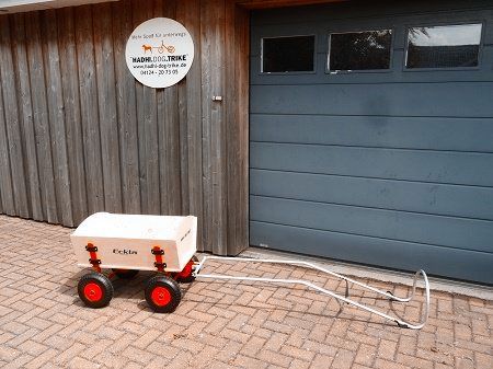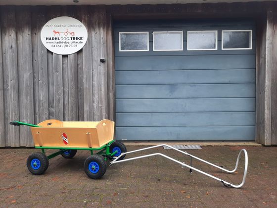 Dann spannen Sie Ihren Hund doch mal ein und lassen Sie ihn einen Bollerwagen ziehen, den wir mit einem Umrüstsatz aus Aluminium und Edelstahl ausgestattet haben.